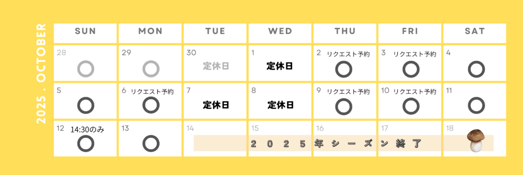 さて、今シーズンの営業日程が決定いたしましたので、お知らせいたします。